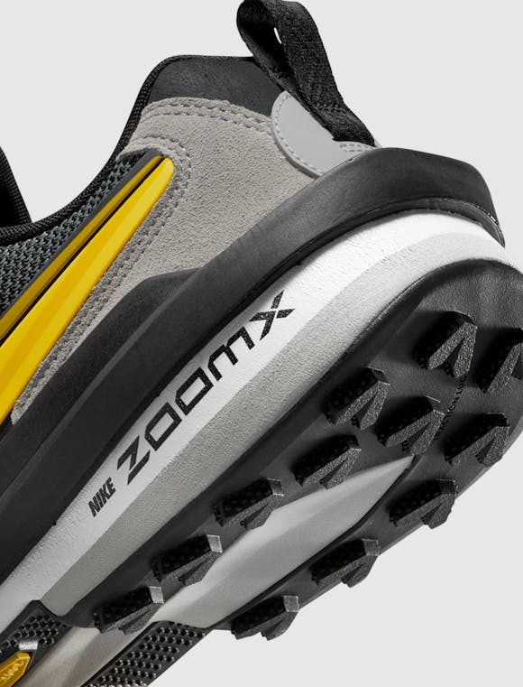 Low top sneakers. Suede upper. Rubber toe guard. Leather overlays around the toe, and eyelet panels. Double-lace front lacing with a plastic lacelock. Padded woven tongue. Synthetic loop pull on the back of the collar. ZoomX cushioned midsole. Vibram rubber outsole.